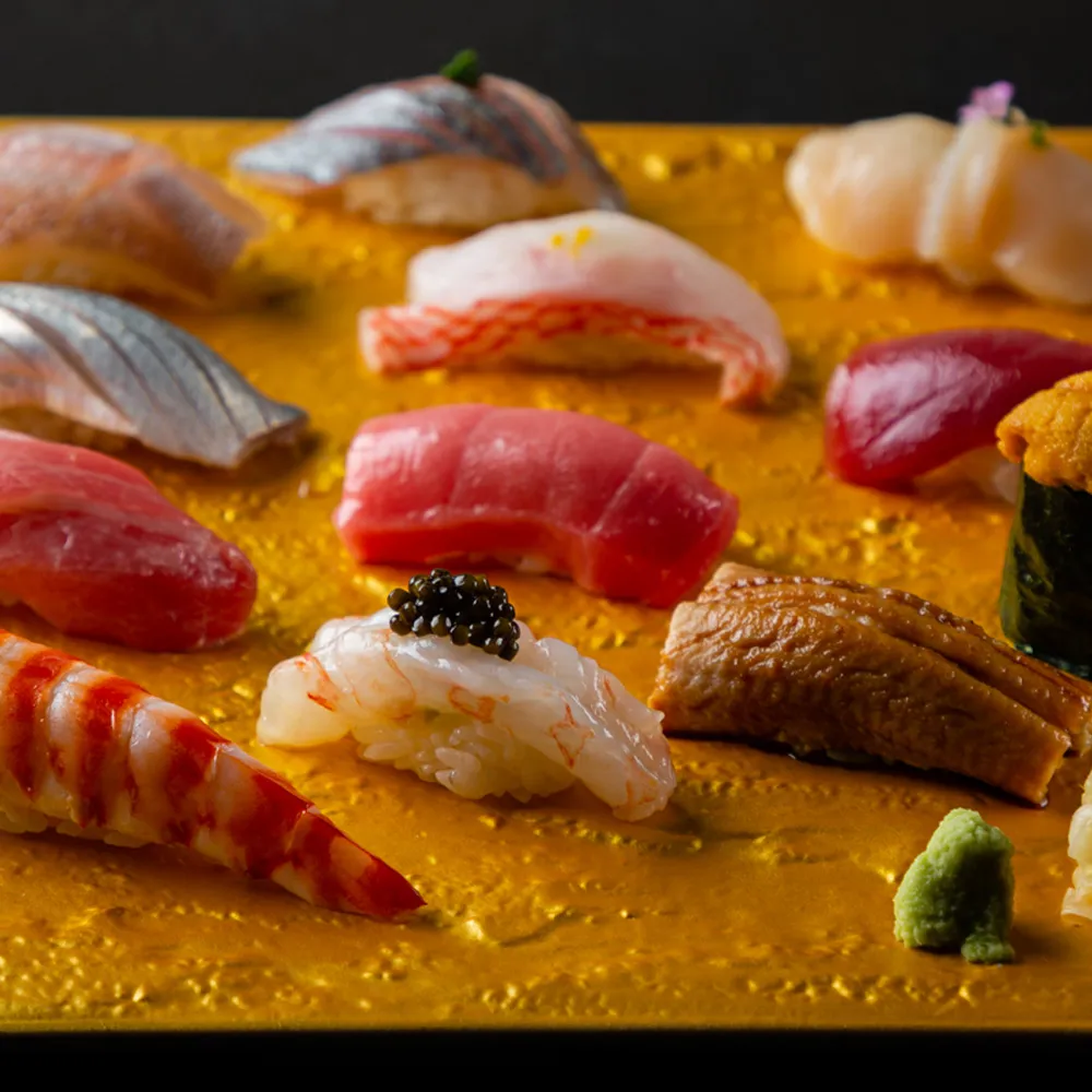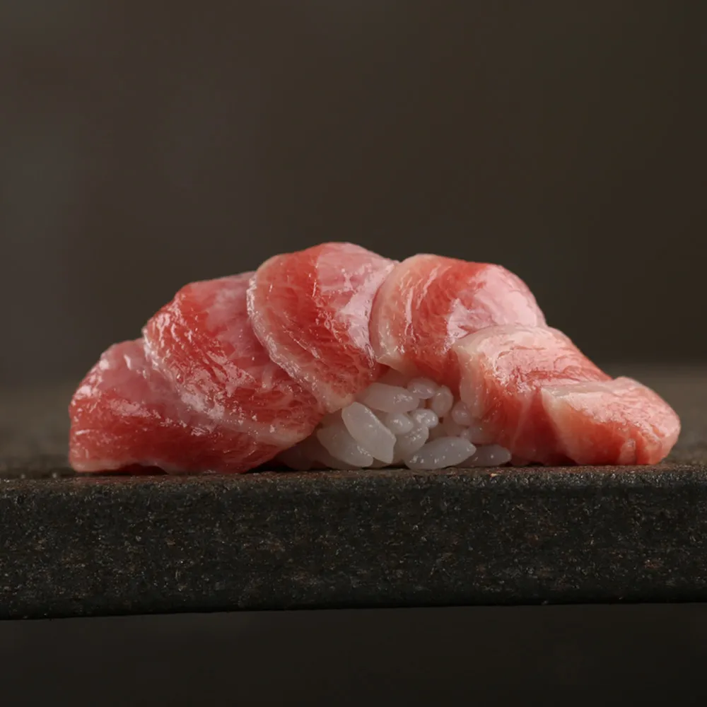We source the freshest seafood from Toyosu Market (formerly Tsukiji Market), Japan's largest fish market, as well as the world's highest-quality Wagyu beef, A5 Ozaki Beef (marbling level 12).