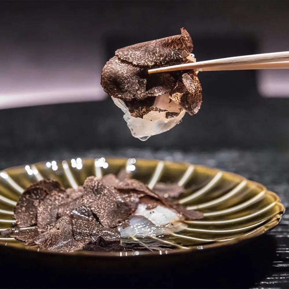We source the freshest seafood from Toyosu Market (formerly Tsukiji Market), Japan's largest fish market, as well as the world's highest-quality Wagyu beef, A5 Ozaki Beef (marbling level 12).