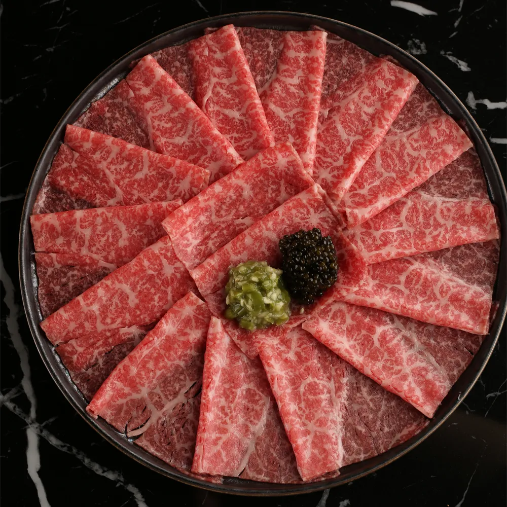 A second jewel in our fine dining crown is Ozaki Beef, celebrated as one of the world's most exquisite meats. In Japan, Wagyu beef is graded from 1 to 5 and awarded a quality score from 1 to 12, a testament to its unparalleled excellence. At TakaHisa, we proudly serve the rarest A5-grade, BMS12 Wagyu beef, sourced exclusively from Japan's most esteemed suppliers. As one of Dubai's few high-end restaurants offering such extraordinary beef, we further delight our guests with privileged access to award-winning Kobe Beef and Matsusaka Beef, ensuring an unforgettable dining experience.